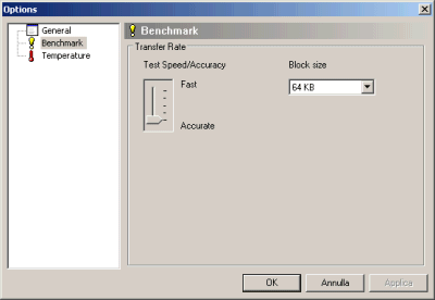 Affinché il test venga eseguito in modo accurato, è necessario accedere alla finestra delle opzioni del programma (pulsante Options), cliccare su Benchmark quindi spostare l’indicatore Test speed/accuracy su Accurate.