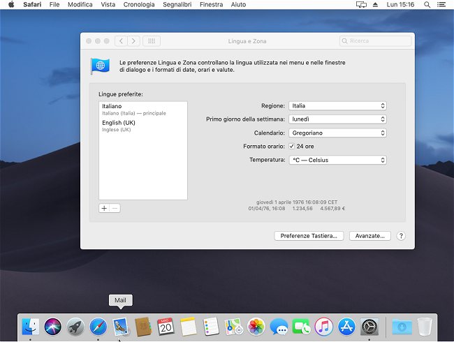 Al primo avvio di macOS Mojave, accedendo alle preferenze di sistema, è possibile impostare l’italiano come lingua predefinita (si dovrà acconsentire al riavvio della macchina).
