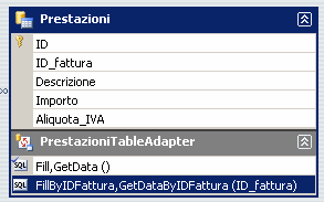 Il “table adapter” della tabella “Prestazioni” annovererà adesso la nuova query appena aggiunta: