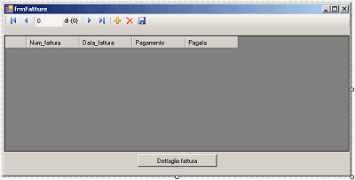 In questo modo il programma visualizzerebbe, all’interno della griglia appena aggiunta sul form frmDettaglio (PrestazioniDataGridView), i “dettagli fattura” relativi a tutte le fatture in archivio.