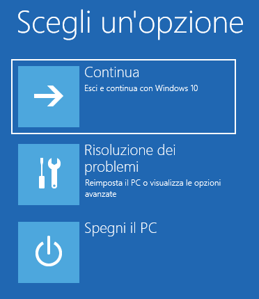 6) Nel menu Scegli un’opzione, è necessario cliccare sulla voce Risoluzione dei problemi.