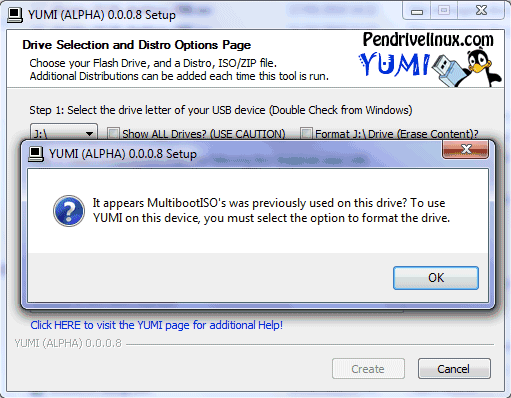 YUMI invita così a formattare il supporto di memorizzazione spuntando la casella Format drive (erase content). In questo modo, tutto il contenuto dell’unità verrà perso, compreso quello aggiunto dopo la configurazione della stessa con MultiBootISOs.