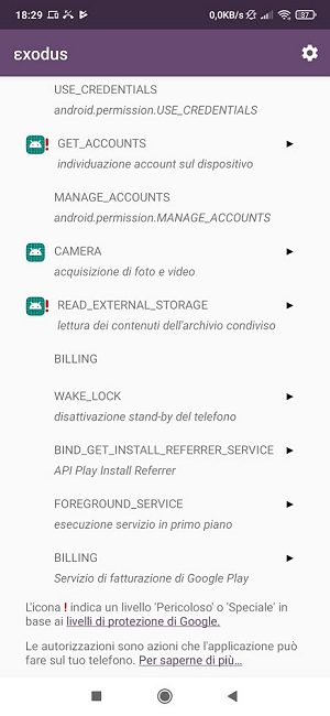 Basta installare e avviare un’app come Exodus per rendersi conto di quali e quanti permessi vengano utilizzati dalle singole app.