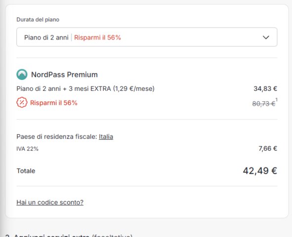 Il Black Friday ufficiale è ancora lontano, ma NordPass ha già lanciato i suoi sconti per il periodo di offerte più attese dell’anno ed è una straordinaria occasione per te per portarti a casa un abbonamento al popolare servizio di password manager ad un prezzo conveniente. Puoi avere infatti il piano di 2 anni a soli 34,83 euro (invece di 80,73)e ricevere anche 3 mesi aggiuntivi a costo zero: in pratica, 27 mesi di protezione a poco più di 1 euro al mese.