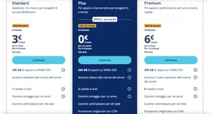 Standard: 100 GB SSD, dominio e 1 e-mail professionale, da 3 €/mese per 6 mesi.