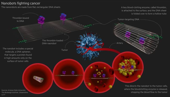 I nanobot sono stati programmati per riconoscere le cellule tumorali e iniettare sulla loro superficie una sostanza capace di favorire la coagulazione sanguigna. Questo tipo di approccio ha permesso di isolare efficacemente le cellule malate interrompendovi l’afflusso del sangue e la loro ulteriore diffusione e replicazione.