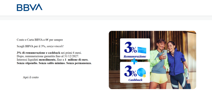 Se stai pensando di aprire un nuovo conto corrente, questo potrebbe essere il momento giusto per farci un pensiero. BBVA ha infatti deciso di allungare i tempi della sua promozione più interessante, dando la possibilità di aderire fino al 30 giugno.