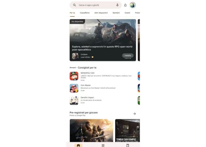 La scelta da parte di Google è quindi chiara: si punta ad incentivare gli utenti a scaricare nuovi giochi, soprattutto quelli di cui non sono ancora in possesso. I suggerimenti che verranno mostrati nell’ampia sezione dedicata, riguarderanno ciò che potrebbe essere di interesse per il profilo in questione.