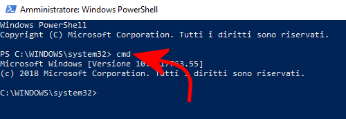 Per eseguire i vecchi comandi dalla finestra di PowerShell, dopo averla aperta basterà semplicemente digitare cmd e premere Invio.