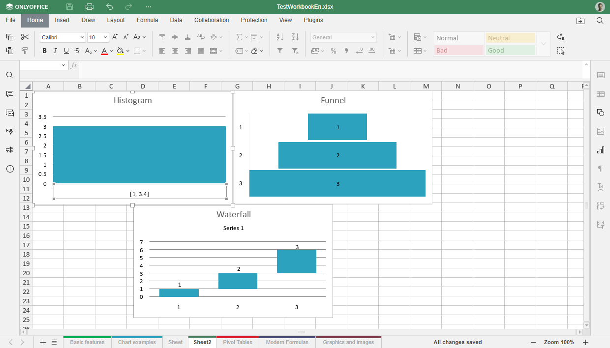 ONLYOFFICE Docs 8.2 aggiunge infine nuovi tipi di grafici, tra cui istogrammi, grafici a cascata e a imbuto, che offrono maggiore flessibilità nella rappresentazione dei dati.