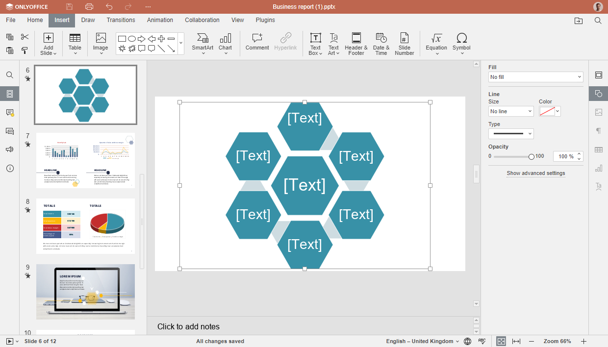 Le Smart Arts di ONLYOFFICE aiutano a trasformare dati e idee in rappresentazioni grafiche accattivanti, facilitando la comprensione e la comunicazione delle informazioni.