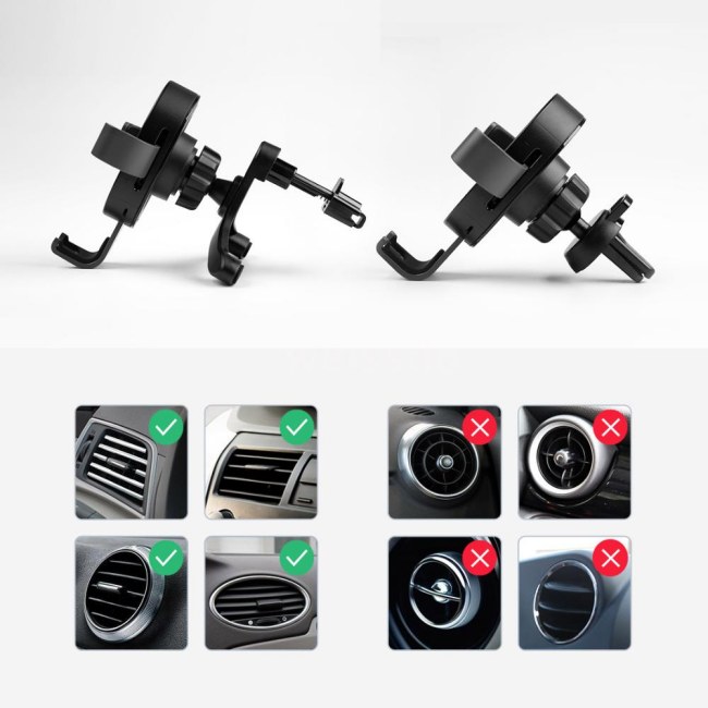 Si tratta di un porta cellulare universale installabile nella propria vettura che si inserisce nelle bocchette di aerazione e consente di caricare in modalità wireless (specifiche Qi) le batterie di dispositivi come Samsung Galaxy S10 Plus, Galaxy S10 , Galaxy Note 8, Galaxy S9 Plus, Galaxy S9, Galaxy S8 Plus, Galaxy S8, Galaxy S7 edge, Galaxy S7, Galaxy S6 edge plus, Galaxy S6 edge, Galaxy S6, iPhone 8, iPhone 8 Plus, iPhone X, iPhone XR, iPhone XS MAX e Xiaomi Mi MIX 3.