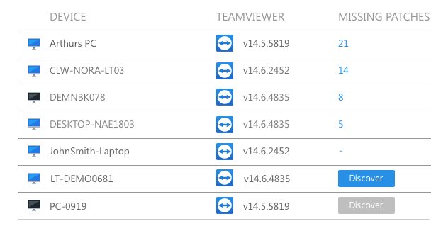 Adesso TeamViewer si arricchisce di una soluzione per il rilevamento della configurazione di ciascun sistema amministrato. Grazie al nuovo meccanismo Patch Management, si possono rilevare le vulnerabilità eventualmente presenti sui vari sistemi eseguendo automaticamente la scansione alla ricerca di versioni non aggiornate dei software e dei sistemi operativi in uso.