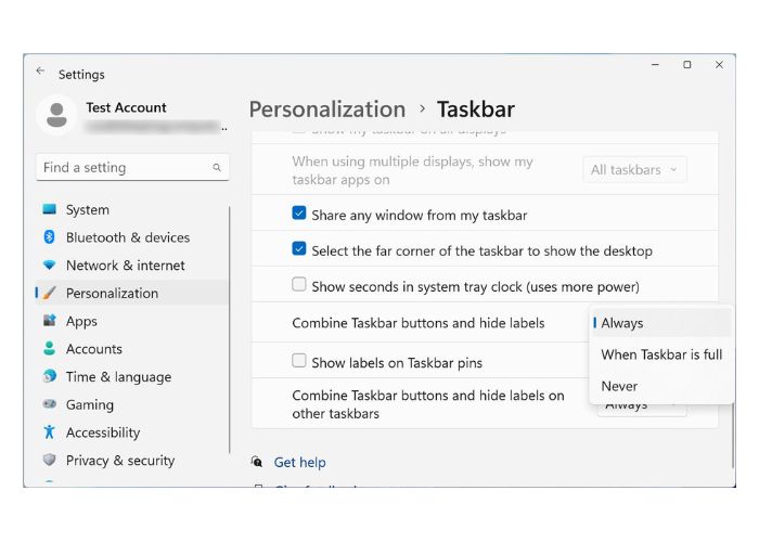 Una volta resa disponibile la Never Combined Mode, gli utenti avranno accesso ad un’opzione ad oggi inedita. Si tratta della voce Combine Taskbar buttons and hide labels che sarà presente nella sezione dedicata alla personalizzazione proprio della barra delle applicazioni.