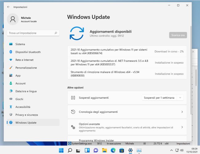 Se si fosse deciso di installare Windows 11 su un PC non compatibile effettuando un aggiornamento da Windows 10 oppure un’installazione da zero (anche con l’ultima versione di Rufus), Windows Update propone comunque gli ultimi aggiornamenti, compreso il pacchetto KB5006674 appena reso disponibile.